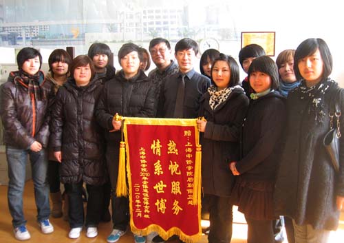 2010年上海世博会已圆满结束,我院的29名世博女兵也已光荣退伍。从2009年5月起后保处和世博女兵已建立了深厚的感情。在2011年2月21日后保处为在校的退伍女兵举行茶话会上,女兵们纷纷表达对后保处对女兵的关心、服务表示感谢,也转达了家长的谢意,并向我院后保处赠送“热忱服务,情系世博”的锦旗