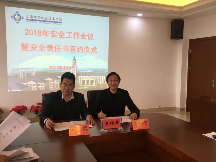 4月4日上午,我校开展2018年度安全生产工作责任书签约仪式。陈晓斌校长和各二级学院、处室主要负责人出席了签约仪式,会议由后勤保卫处顾吉轶处长主持。