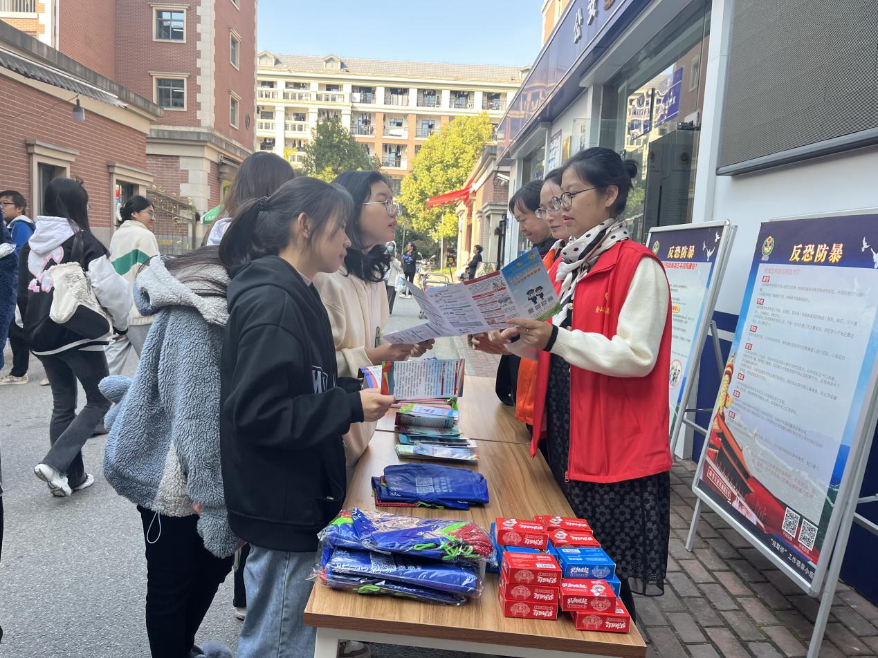此次活动还邀请了张堰镇重点单位和学校一同观摩指导,活动开始前参观了张堰镇中侨平安驿站。张堰镇平安办在平安驿站开展反恐专题宣传活动,组织学生们现场学习反恐防暴知识。